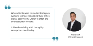 - Faster Time-to-Market & Lower Risk: Because Liferay can spin up portals and digital experiences quickly thanks to its modular architecture and ready integrations, clients see faster rollouts and quicker ROI.